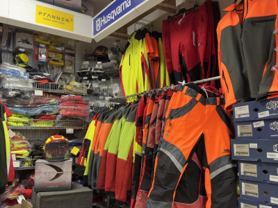 • Schnittschutzhosen und -schuhe nach aktuellen Sicherheitsnormen
